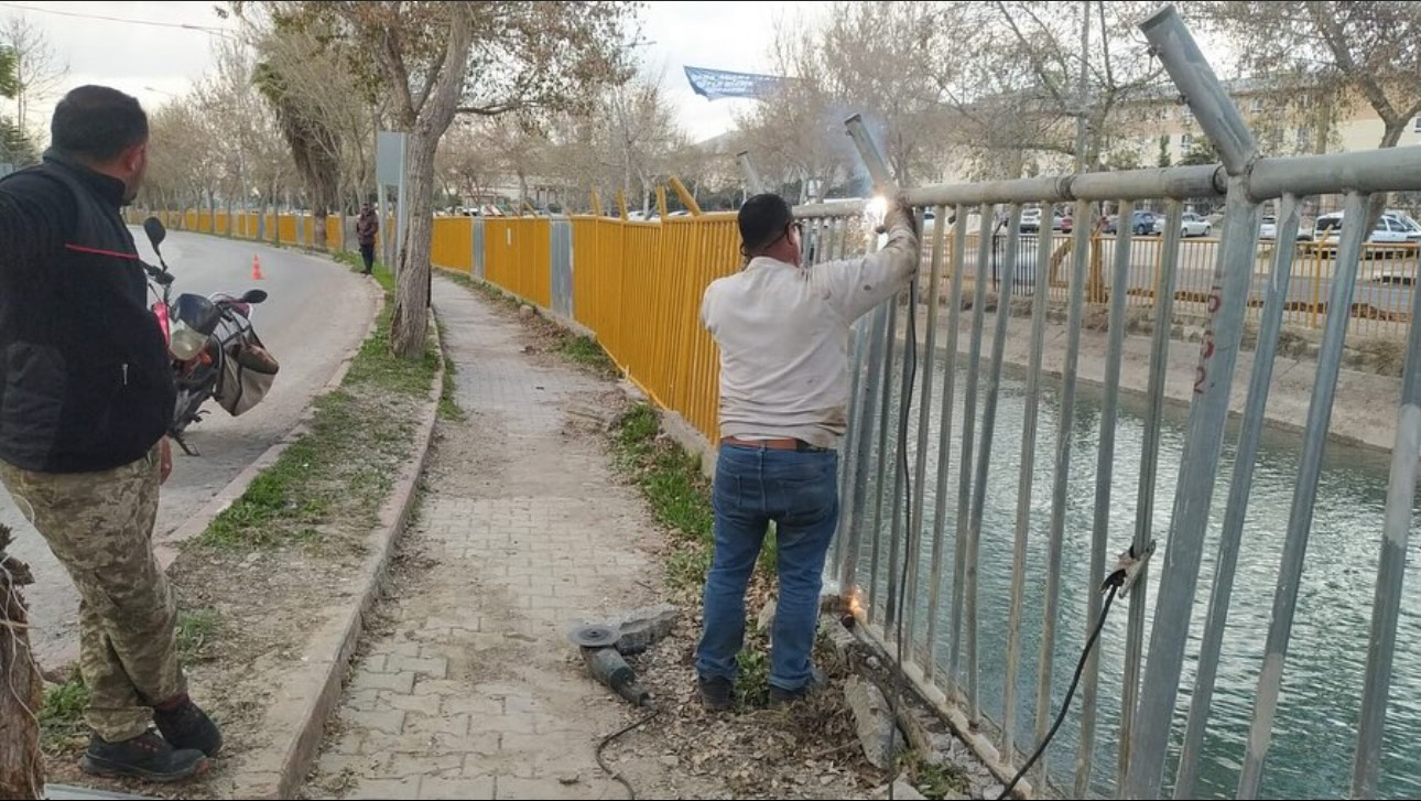 Güvenlik tedbiri amacıyla konulan korkulukların kontrolleri, bakımı ve onarım çalışmaları tüm hızıyla devam etmektedir.